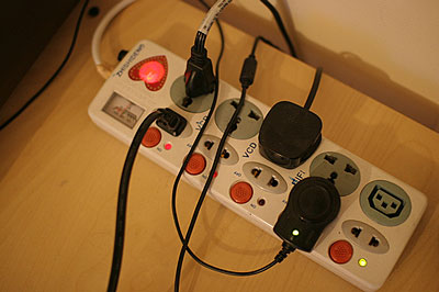 A power strip with lots of different electrical plugs for different parts of the world. Made by a company called Zhong *Sheng*. How cool is that? HT -